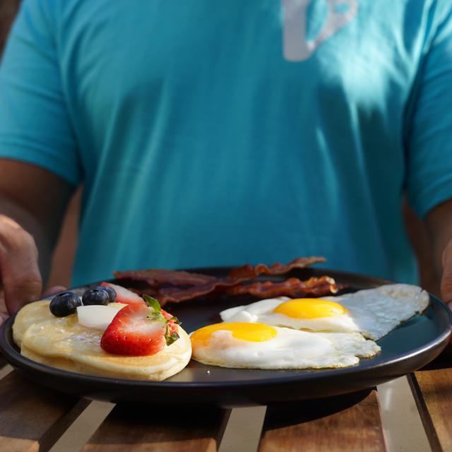 Desayuna cualquier hora del día. Nuestro desayuno especial incluye 2 huevos fritos o revueltos, 1 proteína, 1 queso, y waffles, pancakes o tostadas francesas.